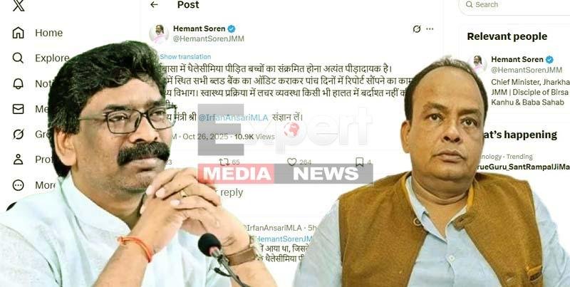 लेकिन रोचक मोड़ तब आया जब स्वास्थ्य मंत्री इरफान अंसारी ने तुरंत जवाब दिया। उन्होंने लिखा: ‘माननीय मुख्यमंत्री महोदय @HemantSorenJMM जी को अवगत कराना चाहता हूँ कि दो दिन पूर्व यह मामला मेरे संज्ञान में आया था, जिसके बाद मैंने तत्काल उच्च स्तरीय जांच के आदेश दिए।’ मंत्री ने निलंबन, जांच समिति गठन (एक सप्ताह में रिपोर्ट) और रक्त स्रोत की पड़ताल का जिक्र किया।